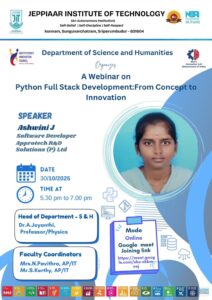 Online Seminar on “Full Stack Development: Concept to Innovation”at Jeppiaar Institute of Technology We are delighted to announce that Approtech…
