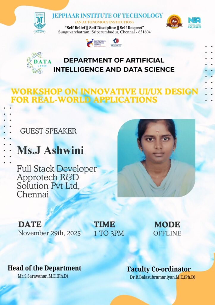 Seminar on Innovative UI/UX Design for Real-World Applications for the students of Jeppiaar Institute of Technology.